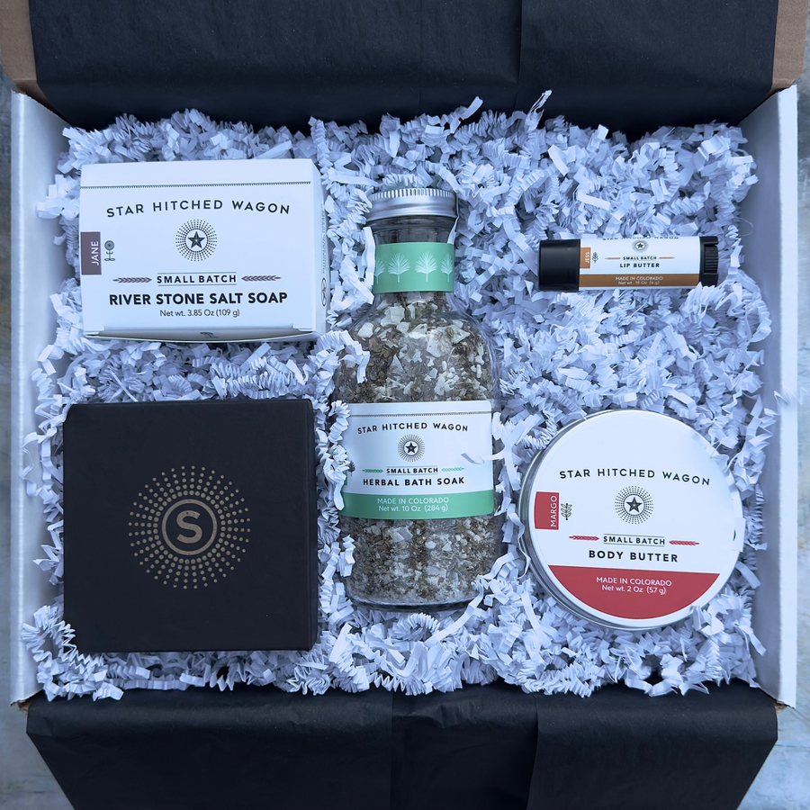 Margo body butter moisturizer in reusable tin, handcrafted with rich oils and butters to soothe dry skin. Scented with citrus, herbs, and spruce.