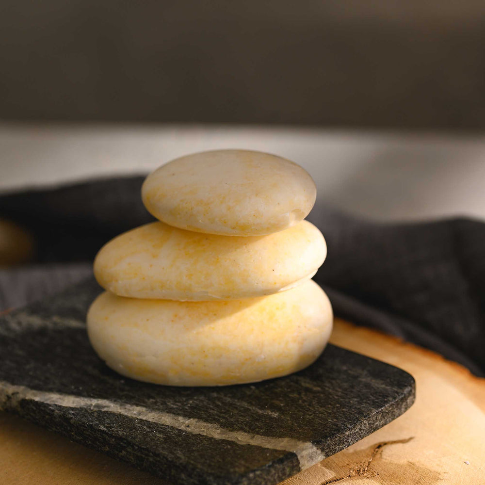 Get ready to elevate your sink or shower space with this beautiful river stone salt soap trio. Each one is unique, just like the rocks that are polished by cold, mountain streams. I use a combination of sea salt, coconut oil and Safflower, Argan and Jojoba oils to nourish and exfoliate the skin.