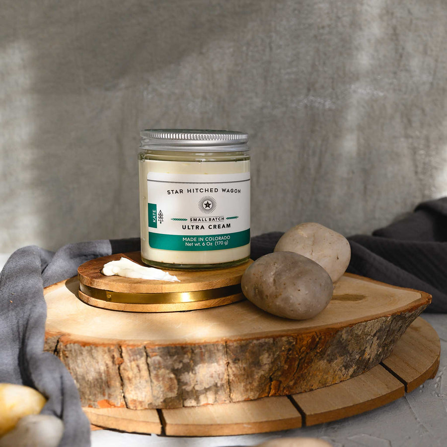 Our 6 ounce ultra cream comes in a beautiful glass jar with aluminum screw top lid. Each recyclable but beautiful enough to be repurposed throughout your home. Beautiful and smart. Perfectly sized for your countertop, desktop or even your backpack.