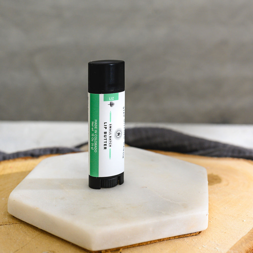Liz’s Lip Butter is an invigorating blend of peppermint and spearmint.
